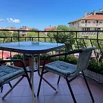 The 4-star Villa Gergana Kiten hotel is nearly a 25-minute stroll from the International Youth Center and features a terrace with a dining table.